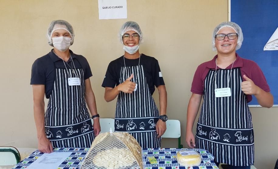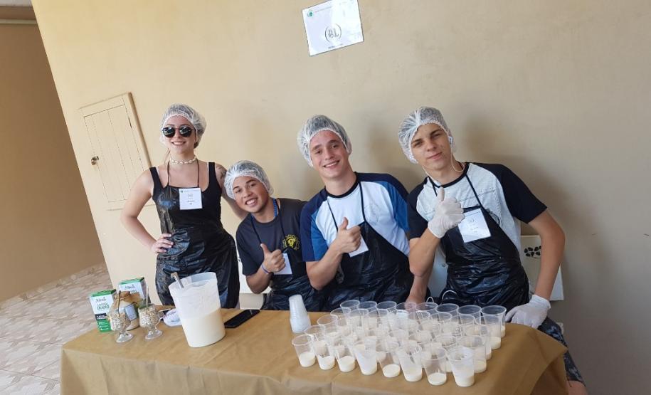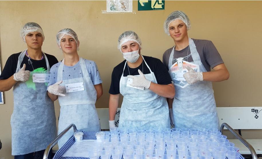 Os alunos da 3ª Série do curso Técnico em Agropecuária, do CEEP Arlindo Ribeiro, na disciplina de Química, sob a orientação da professora Simone Loures e da Agente Educacional I Grislaine Zanella, participaram no último dia 19, da 2ª Feira de derivados do leite e suas propriedades físico-químicas.