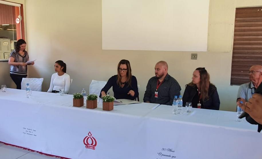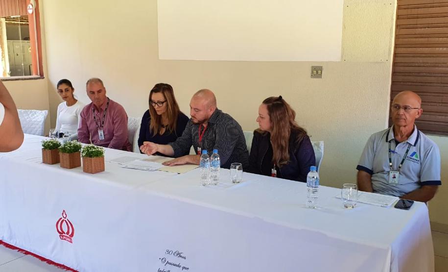 A reunião contou com a presença de toda comunidade escolar, bem como, da Direção do colégio, professor Diego da Luz Nascimento Tecchio, da Diretora Auxiliar, professora Elaine Aparecida de Lima, das representantes do NRE, Chefe professora Edil Aparecida Espínola, Engenheira Aline Hermann e a Supervisora de Obras Liciane Kuspioz Chaves, e também, do fiscal da Cohapar, Engenheiro Igor Kostiuk e o representante da empresa, Sr. Carlos Henrique F. Poças.